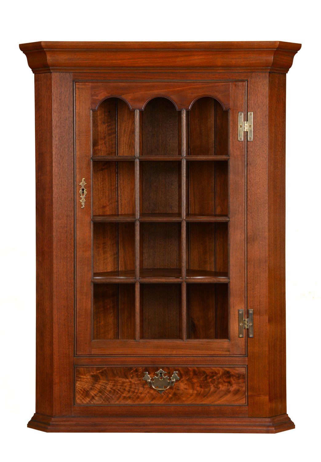 This Hanging Wall Cabinet is a great addition to any room. It looks great over any of our desks, low chests, tables, or simple by itself. The focus of this piece is the tombstone arch divided lite door … all coped mortise and tenon with individual panes of glass for each lite. Other features include dovetailed case construction with beaded face frame, dovetailed drawers, and crown molding.